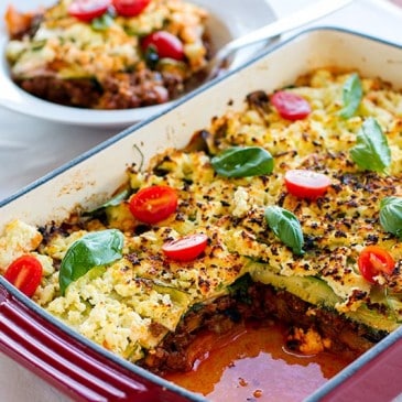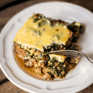 This low-carb, gluten-free lasagna is filled with delicious ground beef ragu and layered vegetables and mushrooms. It’s a perfect meal to serve to friends and family and can be made without dairy for a paleo & Whole30 version.