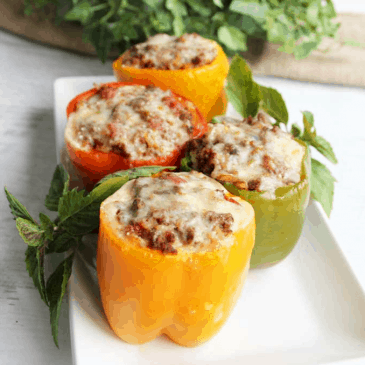 Taco Stuffed peppers are a healthy and low carb way to get your taco fix. All your favorite taco fixins like beef, spice, refried beans & cheese stuffed into colorful peppers.