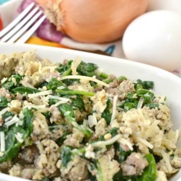 This delicious Keto Ground Beef Florentine Scramble is quick and to make! Serve for breakfast or even dinner!
