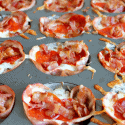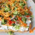 If you don’t want to make a pizza crust from scratch as most of these recipes suggest, you can just take the topping ideas and put them atop a premade on plan crust (ideas mentioned above under “Crusts.”